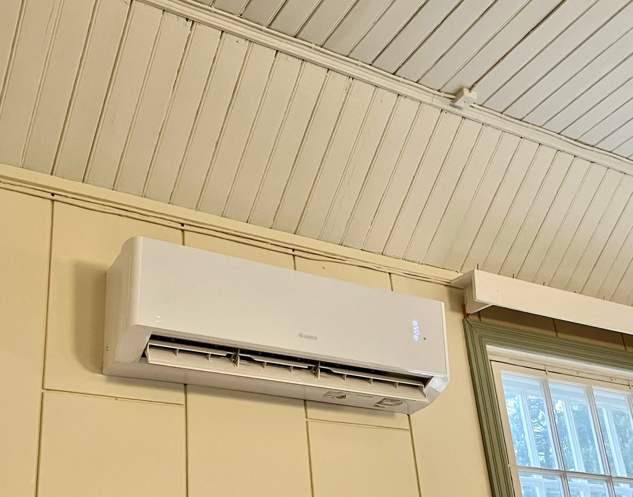 Vårt projekt i Tunaborg: målning av festsalens tak och installation av två luftvärmepumpar